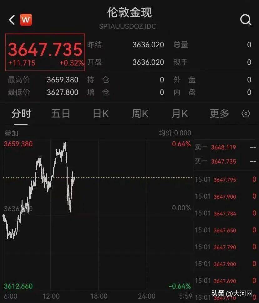 板块方面,黄金概念股集体逆势大涨亦丰策略,成为今日市场重要热点。豫光金铅、恒邦股份、四川黄金、西部黄金等多股盘中涨停。现货黄金今天盘中突破3650美元/盎司关口,创历史新高。