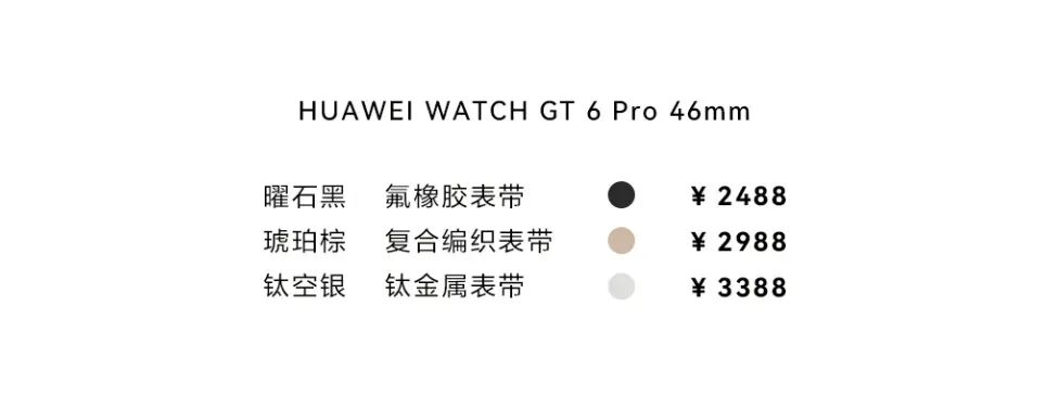 HUAWEI WATCH GT 6 Pro 46mm 2488元起,10月14日开启预售,10月20日正式开售。
